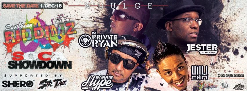 Top soca DJs will come together for the first time in Dubai on December 1st at N'dulge, Atlantis Resort Dubai, for a Soca Showdown at the region's premiere weekly Caribbean night, Caribbean Riddimz. The internationally known Super Soca Mixtape DJs Barry Hype from Saint Lucia who is also known as Rupee 'Tempted to Touch' official DJ, and Jester from Canada, will be joined by Miami-based DJ & Producer DJ Willy Chin and Trinidadian DJ Private Ryan known for his various mixtapes online and being one of the most recognised versatile DJs Internationally.