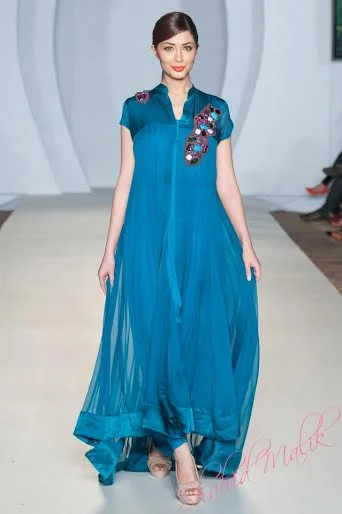 Digital prints are the special trademark at her brand.She is introducing the innovation of retro 70s cuts into a fusion of modern designs with a new theme of silk prints and heavy Middle Eastern party dresses.